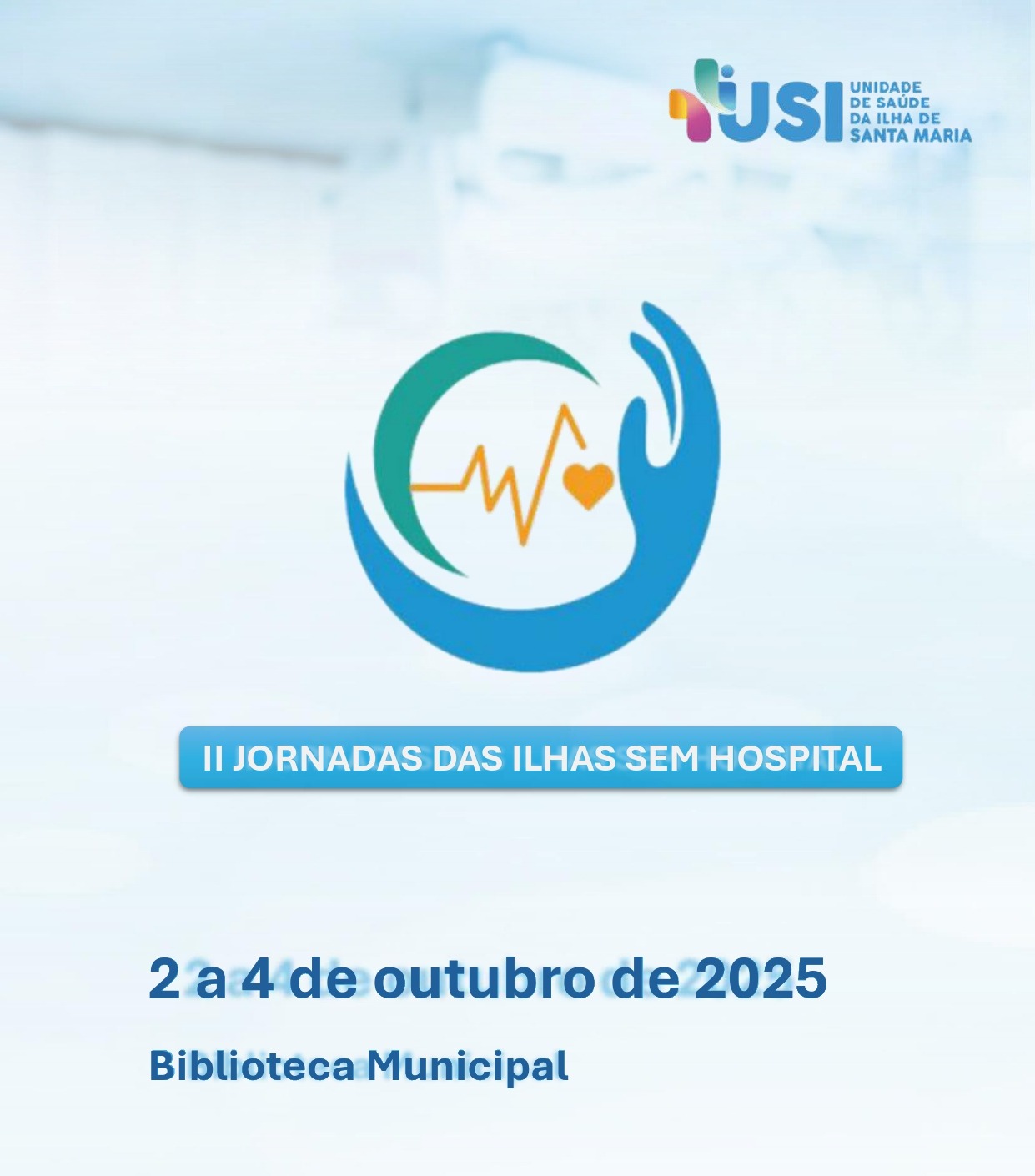 Bem vindos às II Jornadas das Ilhas Sem Hospital que irão decorrer entre 2 e 4 de outubro 2025, na Biblioteca Municipal de Vila do Porto, ilha de Santa Maria.